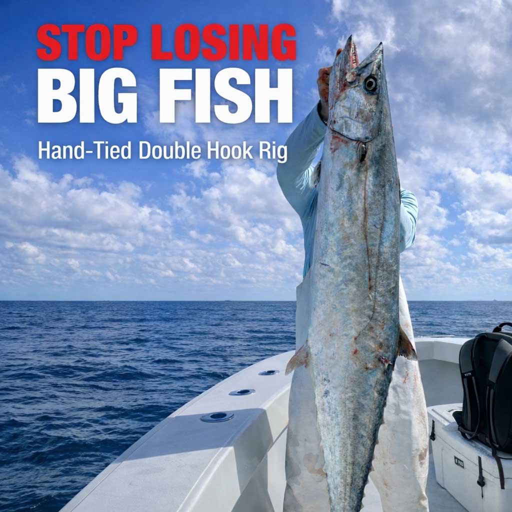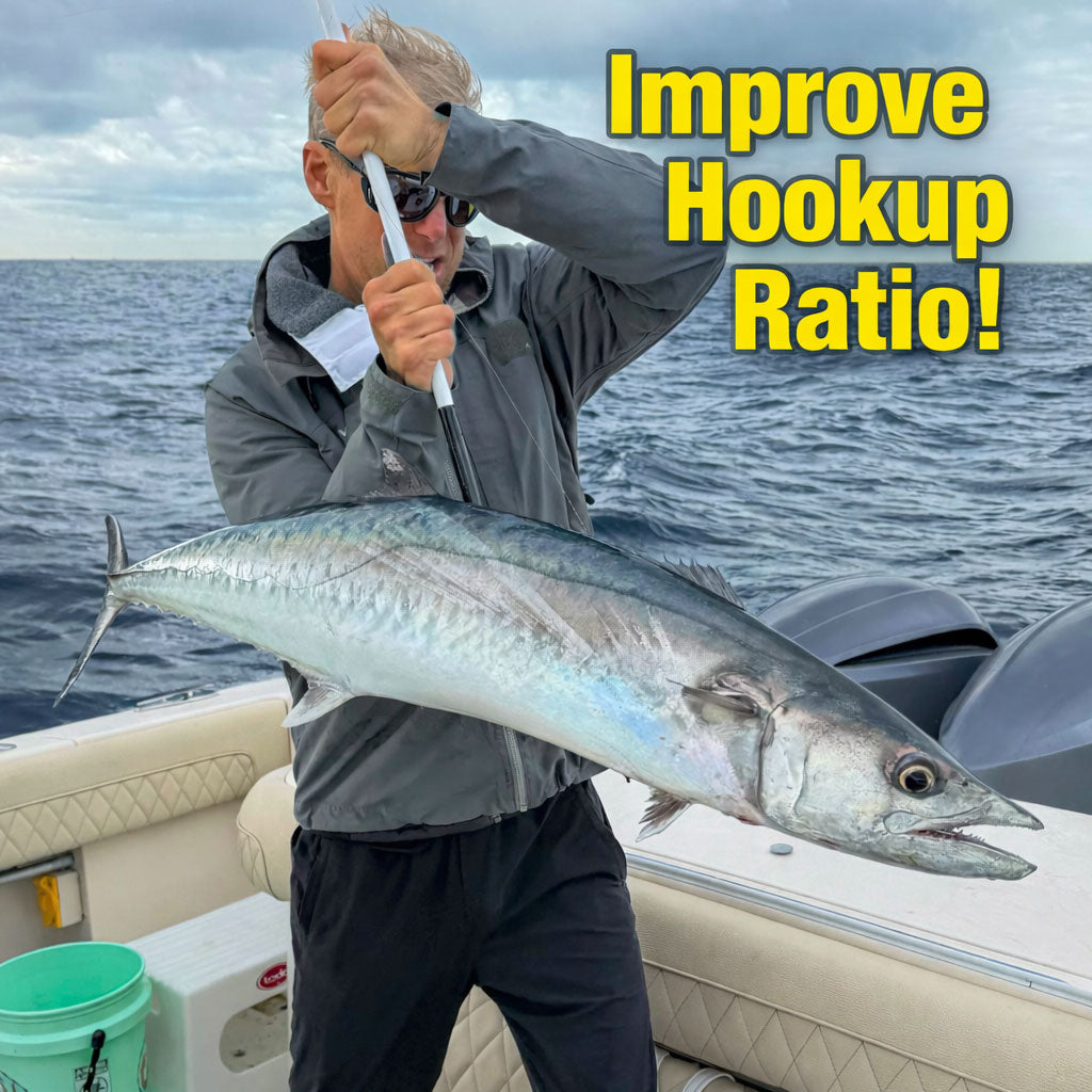 Start catching more toothy species such as Kingfish and Wahoo with our JuJu Double Hook Live Bait rigs. Increase your hookup ratio and landing rate with the secondary stinger hook to prevent short strikes and get those fish to the boat.
