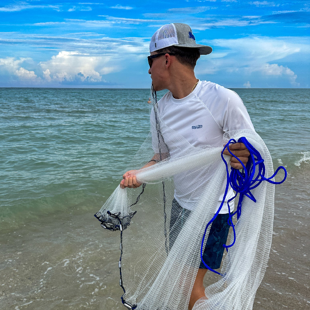 The ultimate cast net for catching bait from the beaches, lakes, shore-lines and banks is here. The shore series was designed by fisherman that needed a net light enough to carry long distances, but heavy enough to sink fast and get the bait in one throw - "one and done". At the same time this net was formulated to catch a wide variety of bait species from 2" to 12".